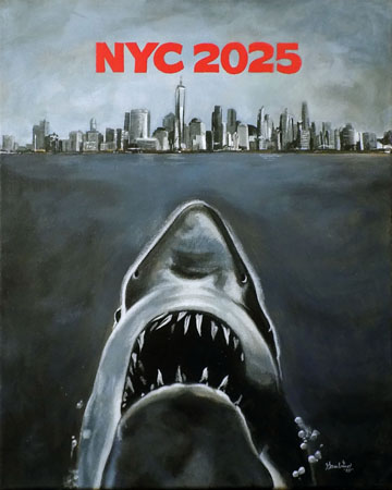 Contact me for any AVAILABLE ORIGINAL ART, LOGOS, COMMISSION WORK or any other questions you might have concerning art on this site. I will paint to order! Get a load of my artwork for TOPP'S WACKY PACKAGES! To Buy Prints and original art, VISIT THE STORE. See my Promotional Artwork for AC Delco. See my other Big Letter Postcard Designs and Travel Art. Here is my latest painting: "Jaws 2025" © 2025 Sam Gambino. All Rights Reserved. Original: 16" x 20" Acrylic and Enamel and on stretched canvas. SOLD © 2025 Sam Gambino. All Rights Reserved.