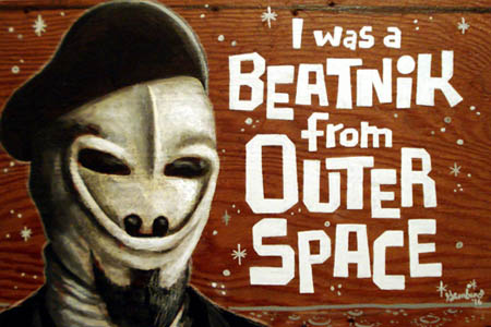 Original: Enamel, acryllic and colored pencil on early '60's vintage plywood board: 8 in. x 12 in.