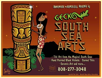 Illustration by Sam Gambino for Gecko's South Sea Arts, Honolulu, Hawaii.