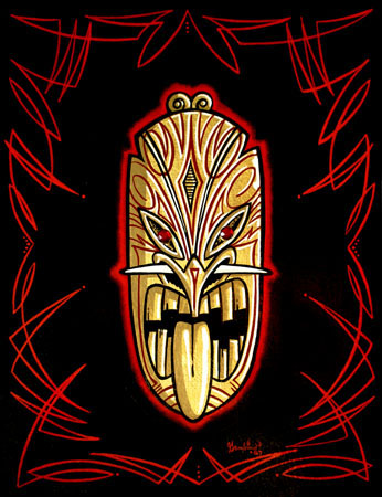 Part of Tiki Magazine's Tiki Island Art Show, November 2, 2007 at San Diego's Bali Hai Restaurant. Original: 10 in. x13 in. gold leaf and enamel on board.