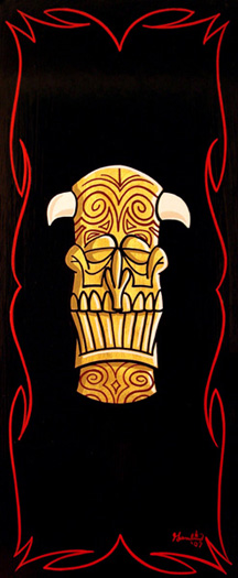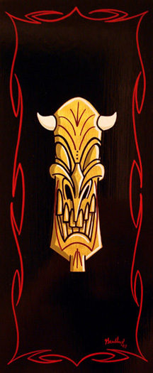 Two pieces which are part of the series of 6 gold leaf paintings for The VooDoo Rooms of West Register St., Edinburgh, Scotland. Originals: 7 in. x17 in. gold leaf and enamel on board.